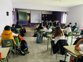 Os alumnos de 1º da ESO recibiron unha charla sobre seguridade e uso responsable de Internet, a cal está dentro do Plan "Navega con Rumbo polo Ciberespazo", do Colexio Profesional de Enxeñería en Informática de Galicia.